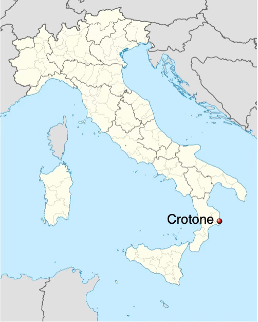The great mystic, mathematician, and philosopher Pythagoras settled in the ancient city of Kroton in about 530 BCE. This city was one of many Greek settlements in Magna Graecia (Great Greece) and what is now the city of Crotone in Calabria, Southern Italy.